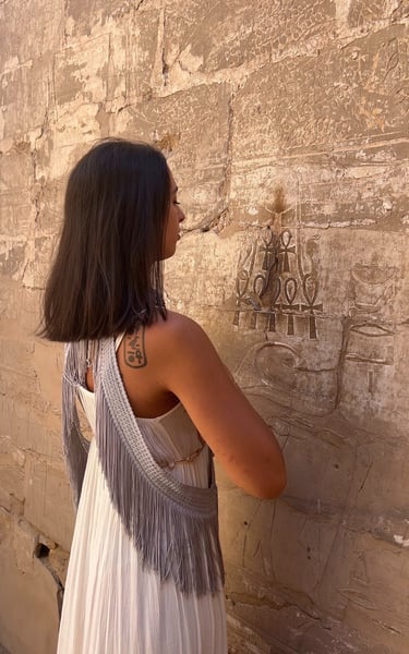 Karnak est un vortex vivant où le sacré respire à travers la pierre. Les colonnes s’élèvent comme des rayons de lumière, rappelant à ton âme sa puissance originelle. Au cœur de la chapelle de Sekhmet, Déesse du feu et de la guérison, tu brûles les anciens voiles pour renaître. Ici ton essence se souvient de sa souveraineté et de sa vérité.