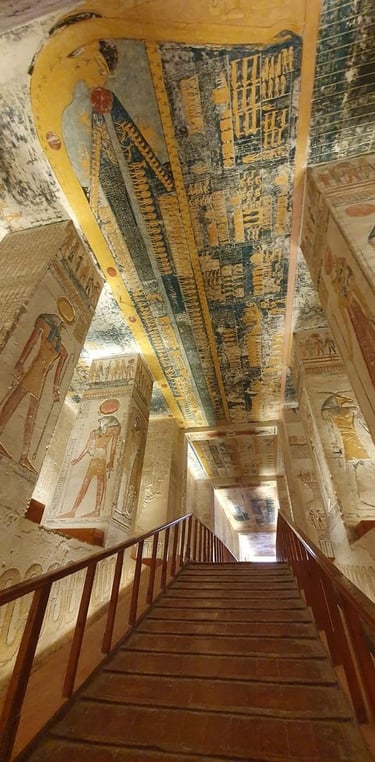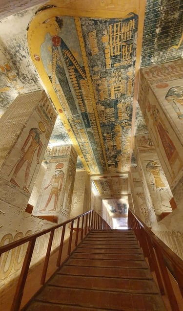 Départ pour la rive Ouest de Louxor, à la découverte des mystères funéraires de l’Égypte ancienne. Mort symbolique & renaissance intérieure : La Vallée des Rois représente le passage, la transformation et la renaissance. Temps d’introspection guidé autour du lâcher-prise : laisser derrière soi ce qui n’a plus lieu d’être et accueillir une nouvelle version de soi. Au temple d’Hatchepsout : reconnexion à la puissance du féminin souverain, à la sagesse et à la capacité d’incarner pleinement sa place. Fin de journée : balade sur le Nil pour admirer le coucher du soleil, cercle de parole et de transmutation avec l'énergie de l'eau.